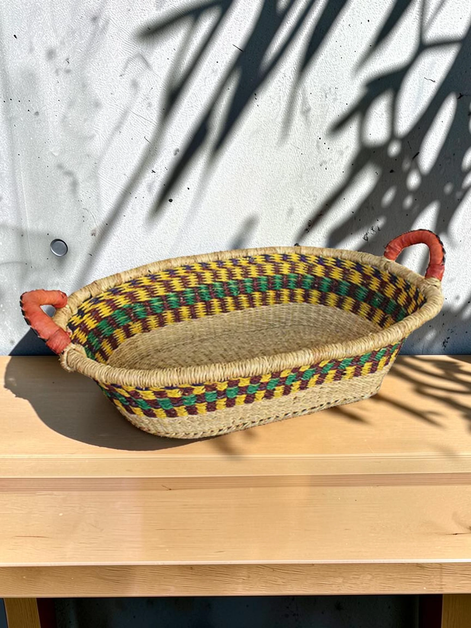 We understand that quality and size are paramount. Each basket is intentionally crafted to provide a spacious surface area of 16″–17″ long and 10″–11″ wide, ensuring it serves as a functional centerpiece rather than just a decorative accent. The addition of vegetable-tanned leather handles not only enhances the visual contrast but also ensures a secure, comfortable grip when moving from the kitchen to the dining table.
