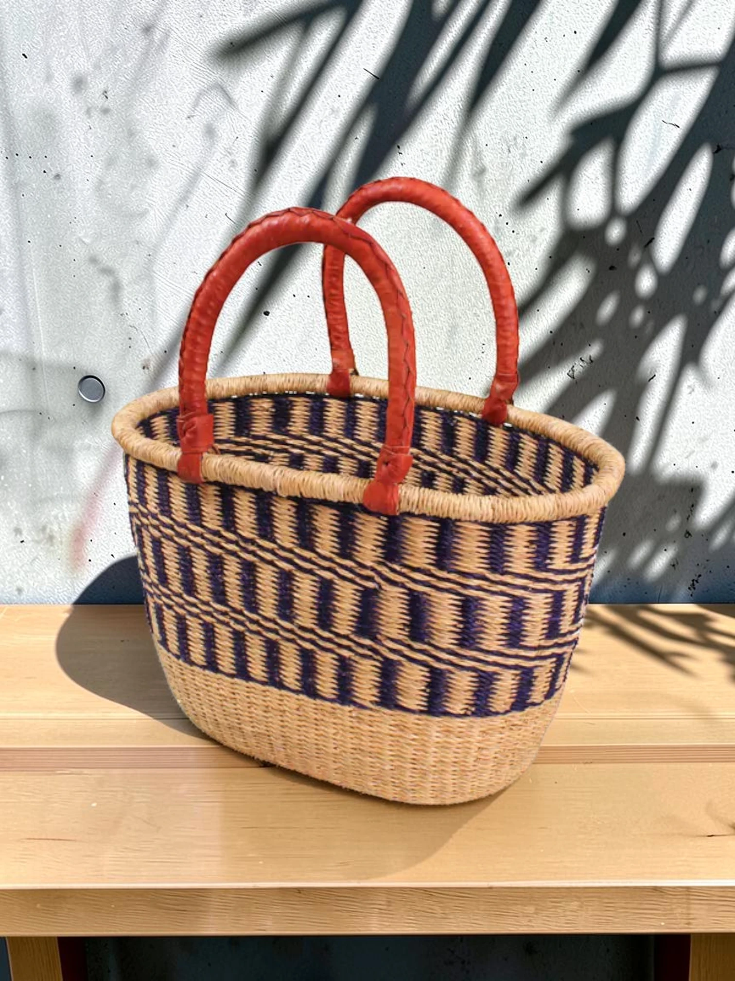 - Material: Sustainably sourced elephant grass with premium leather handles.