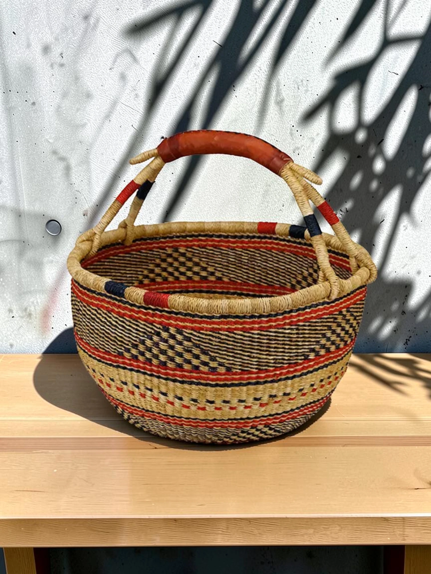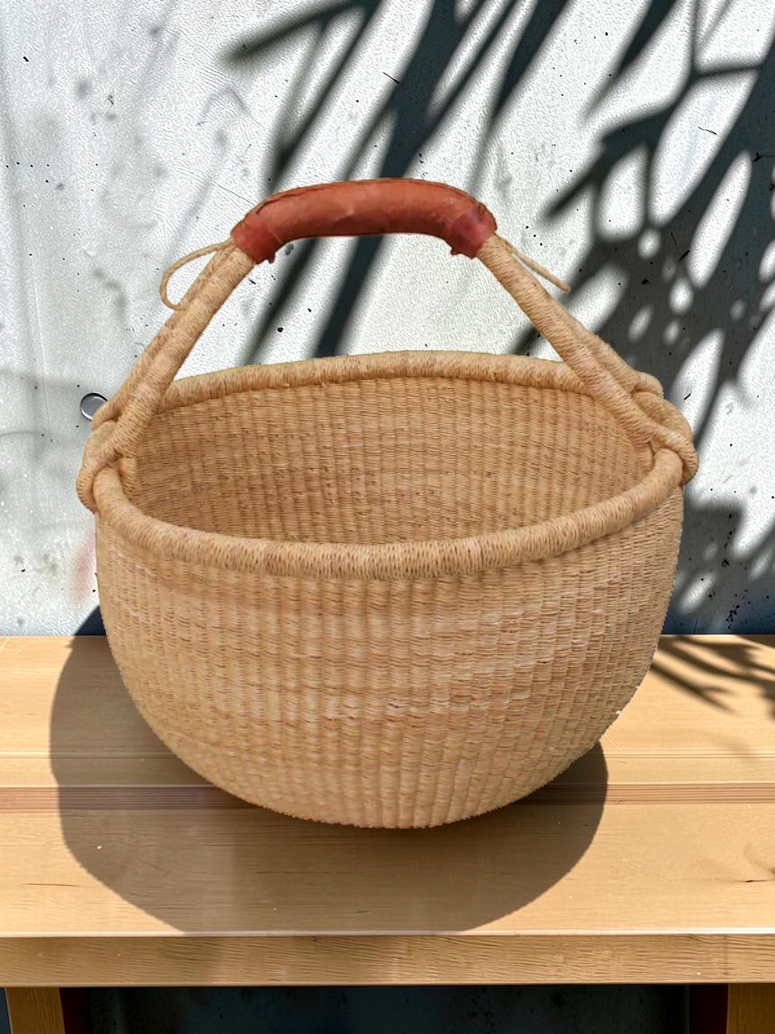 Elevate your home organization with this hand-woven basket, a perfect blend of traditional craftsmanship and modern functionality. Each piece is meticulously crafted from sustainable elephant grass, known for its exceptional strength and natural breathability. Measuring 12″–14″ in diameter and 7″–9″ in height, this basket is designed to be as practical as it is beautiful.