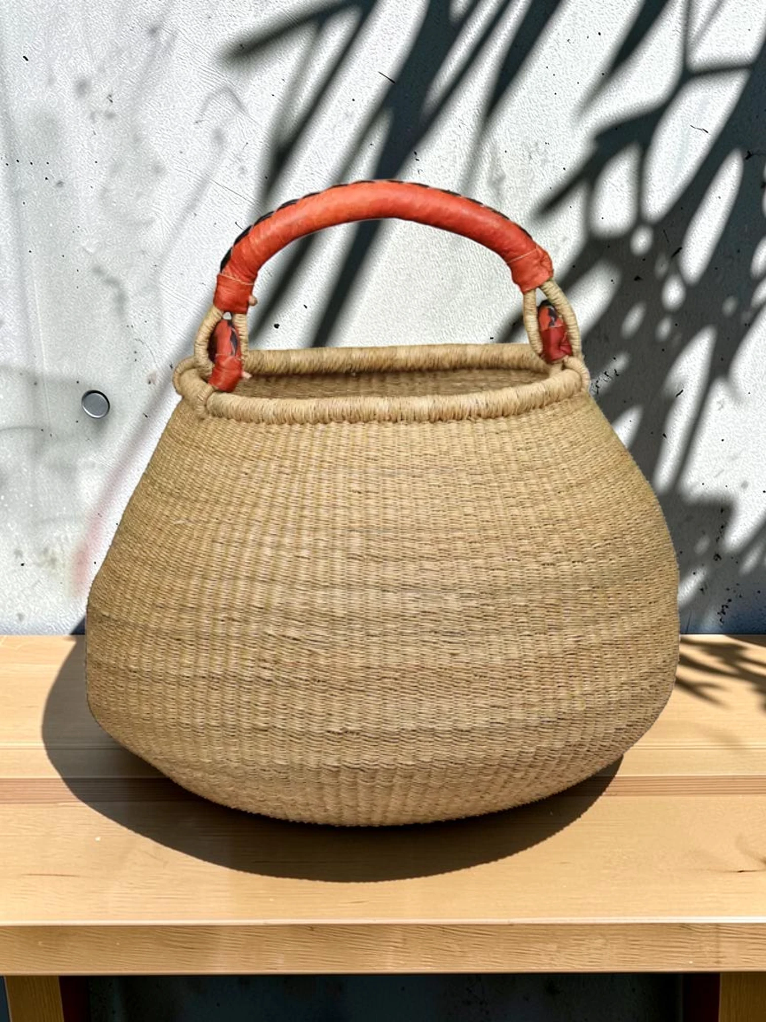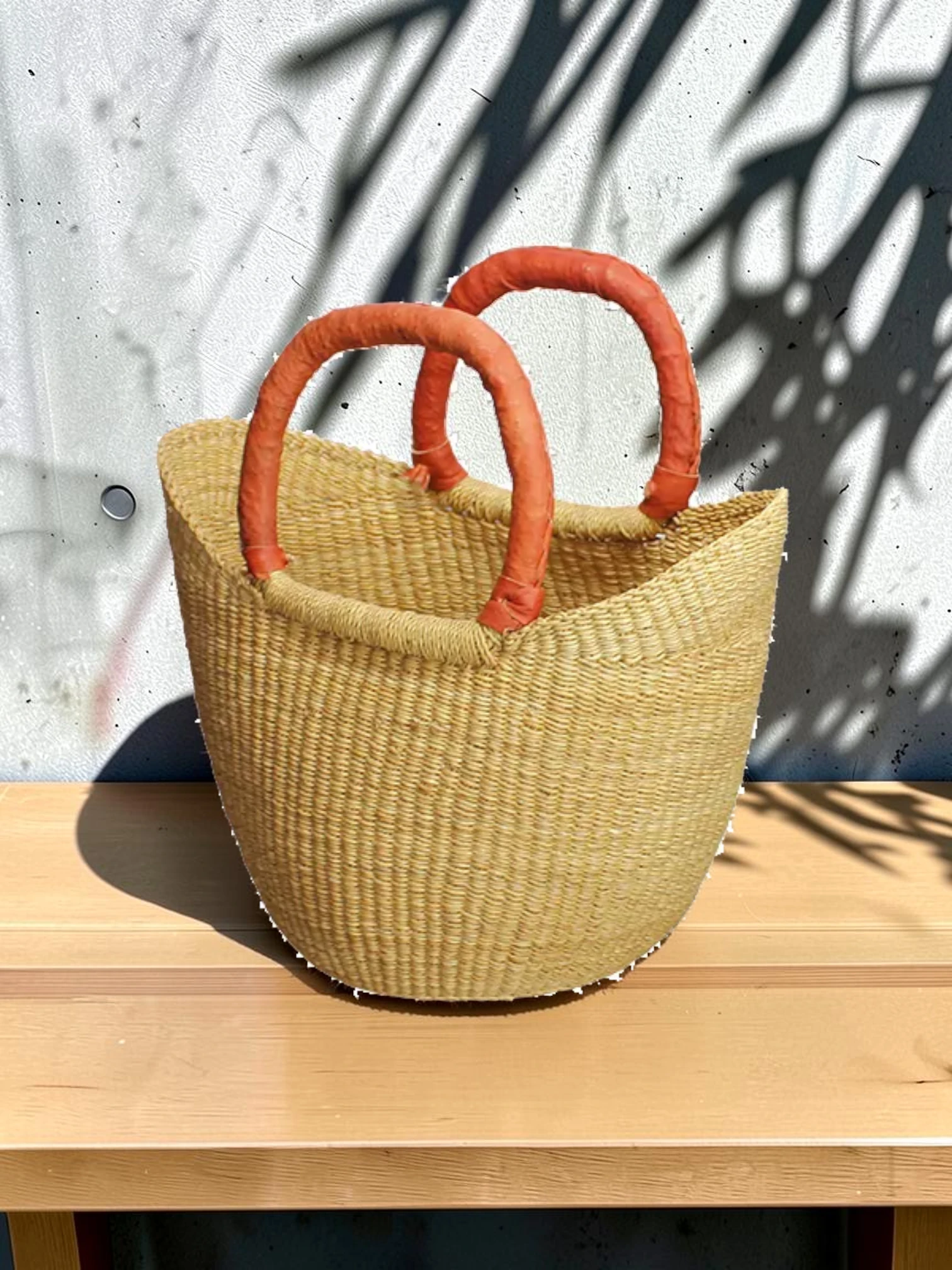 • Sustainable & Sturdy: Crafted from eco-friendly elephant grass, this bag offers a lightweight yet durable construction. The integrated leather handles provide a comfortable, secure grip, ensuring your belongings are carried with ease.