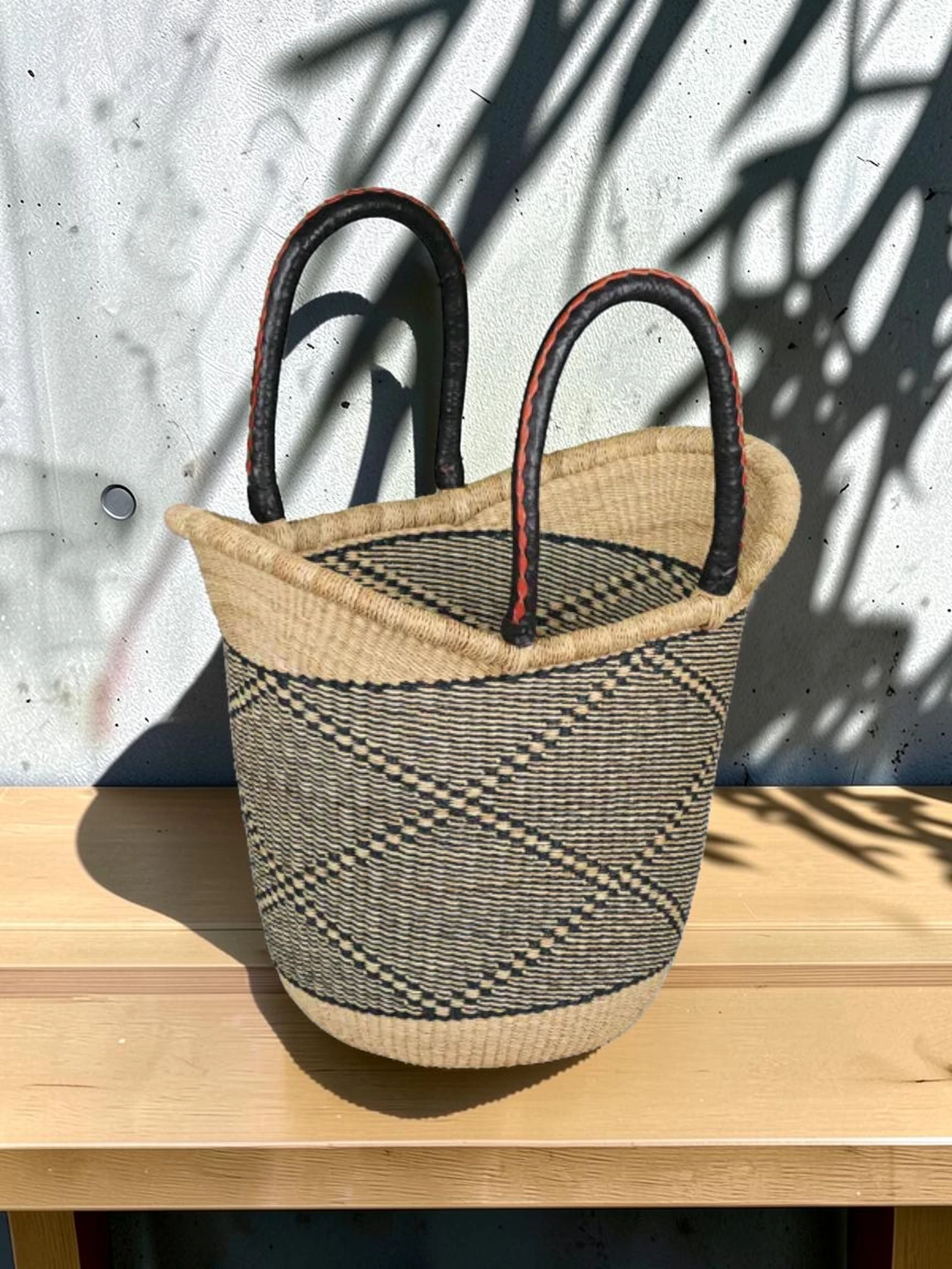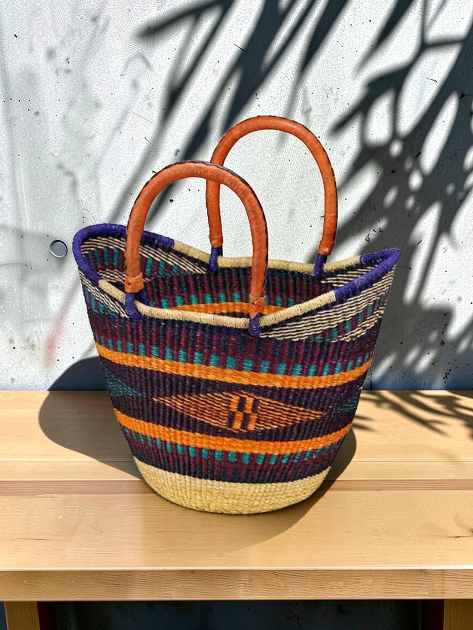 We believe in quality you can feel. That is why each tote is finished with premium vegetable-tanned leather straps. These handles are designed for durability, providing a soft yet secure grip that ages beautifully over time. Because each bag is hand-woven by skilled artisans, every piece features subtle variations in pattern and color, making your tote a one-of-a-kind accessory.